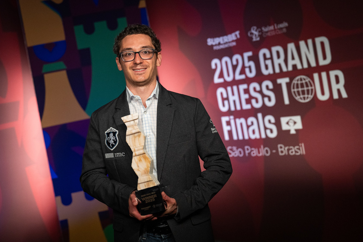 champion du monde de blitz 2021 se faisait terrasser dans la discipline où l'on attendait le moins Caruana. À la cadence 5'+2'', l'Américain parvenait en effet à infliger trois défaites consécutives, avant d'offrir la nulle au n°2 tricolore lors de la quatrième et dernière partie à São Paulo, remportant ainsi in extremis la victoire finale du Grand Chess Tour 2025, son deuxième sacre après celui de