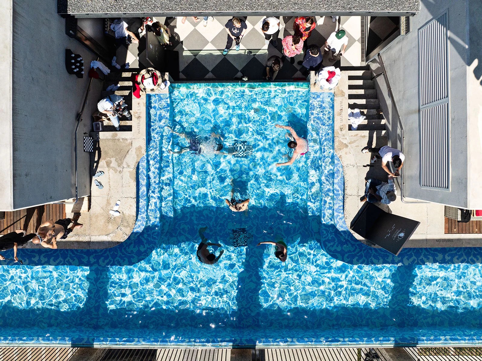 Les joueurs effectuaient leurs coups sur un petit échiquier placé à 110 centimètres de profondeur, au fond de la magnifique piscine sur le toit de l'hôtel Silo. Chaque fois qu'un joueur jouait et remontait à la surface pour respirer, l'adversaire devait plonger immédiatement et effectuer son coup.