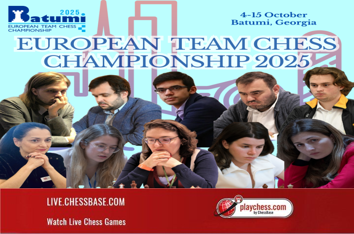 14/10/2025 – Du 05 au 14 octobre se déroulent les Championnats d'Europe par équipes à Batumi, en Géorgie. Format: 9 rondes, équipes de 4 joueurs. Cadence: 90'+30' +30''. | À suivre commenté en direct ici.