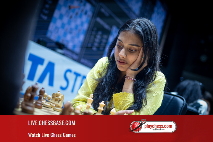 12/01/2026 – Le tournoi féminin de blitz a offert un suspense haletant. Yip avait avant la dernière ronde un ½ point d'avance sur Goryachkina et sur l’étonnante Vantika Agrawal. Cette dernière, deuxième joueuse la moins bien classée du tournoi au départ, a créé la surprise en remportant trois parties d’affilée, battant successivement Yip, Tsolakidou et Rakshitta Ravi. Les résultats de l'ultime manche ont souri à Vantika: Yip n’est pas parvenue à convertir une position gagnante, Goryachkina s’est inclinée, et Lagno a laissé filer un mat forcé en trois coups, laissant de surcroît la victoire à Vantika. Celle-ci terminait ainsi première à égalité de points (10½) avec Yip, tandis que la Grecque Tsolakidou s’adjugeait la troisième place seule avec 10 points. Conformément au règlement, un match de barrage devait servir à départager les deux leaders, bien que l'Américaine se soit inclinée dans les deux confrontations directes contre l'Indienne. Dans la première partie (noires pour Yip), l’Américaine a rapidement pris l’initiative et converti sans trembler. Avec les Blancs dans la seconde, elle a contrôlé les débats et neutralisé les tentatives de Vantika. La partie s’est terminée par la nulle après le 120ᵉ coup selon la règle des 50 coups. | Photo: Lennart Ootes.