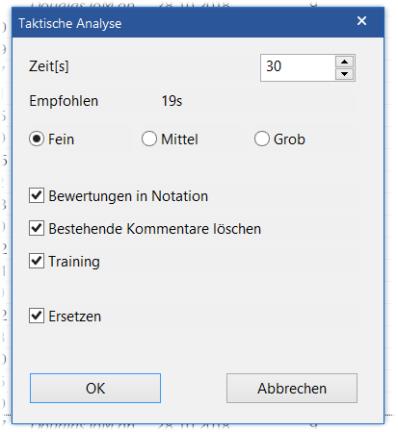 L'analyse tactique démarre en pressant sur "OK". Idéalement, on laissera travailler l'ordinateur pendant qu'on se repose soi-même, car tout le processus est entièrement automatisé.