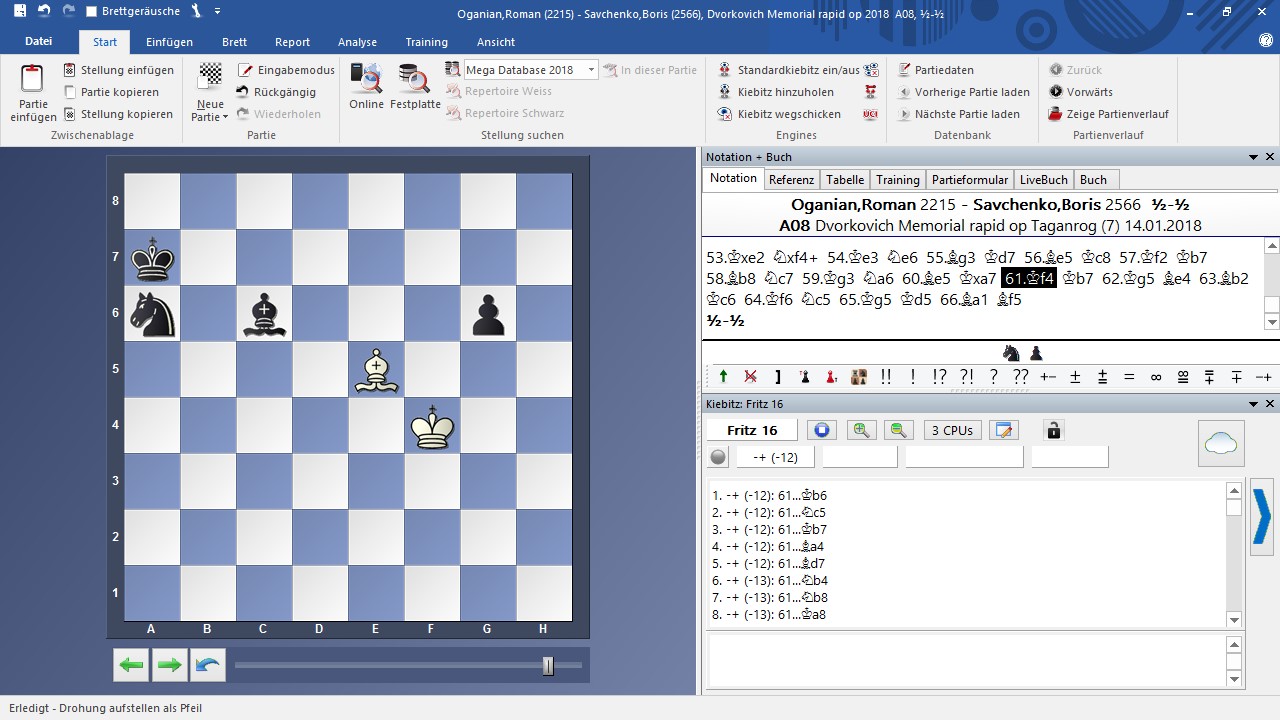 Un tuyau: Houdini 6 et Komodo 11 et 12 utilisent Endgame Turbo aussi dans des positions qui comprennent plus de six pièces sur l'échiquier, notamment lorsque des variantes dérivent dans ce type de finales. Fritz 16 n'a pas cette capacité; pour l'analyse des finales complexes, nous privilégions donc les deux premiers programmes cités.