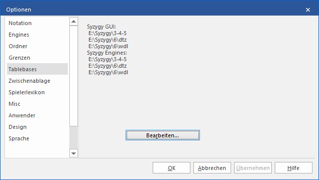 Si le moteur d'analyse, au lieu de lister immédiatement l'évaluation de tous coups légaux, se mettaient à calculer les variantes, cela signifie que l'accès aux tables de finales à échoué. Il faut alors aller dans le menu Option -> Bases de finales -> Modifier: